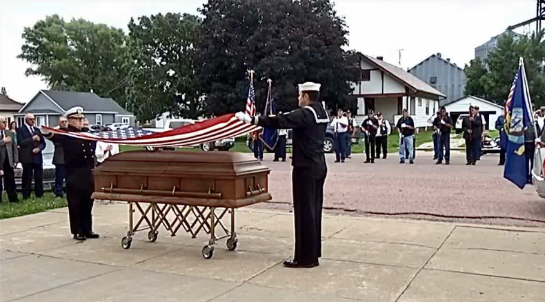 The local Legion Post stood at attention and were surrounded by a group called The Freedom Riders, veterans who travel on their motorcycles to funerals of fellow veterans. Also present, standing before the casket were two members of the Navy Honor Guard who carefully folded the flag and presented it to me. All of this followed by the gun salute and playing of taps.