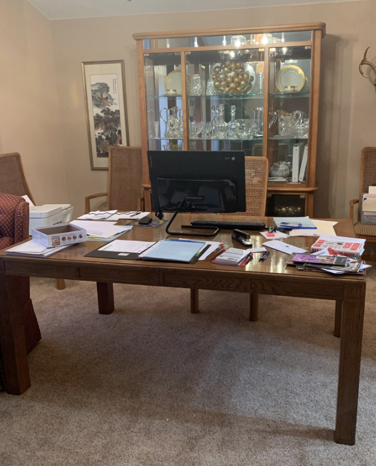 It’s a process and certainly a journey that we’re on, a journey where the road is uncertain as well as the destination and ETA. The best we can do is take one day at a time, reminding ourselves all along that each day truly is a gift. Mike has officially retired from the Bank but remains chairman of the board, so we’ve set up an office for him in the dining room.