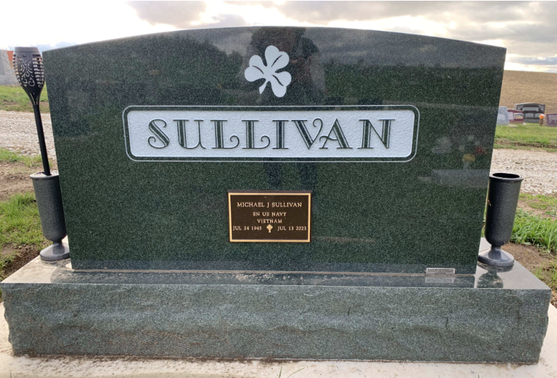 In my brief research, I saw many alternatives, starting with the local cemetery where our stone is placed. The cemetery dates back to the early 1800’s and most of the markers are very traditional. But I noticed that over the years the stone design became more elaborate. There with sketches denoting hobbies or professions. Farming was common with a sketch of a barn or a tractor. There’s even a photo of a bull because the family raised cattle. Military service is often recognized with a bronze plaque usually put on the back of the stone, as is the case with Mike’s stone.